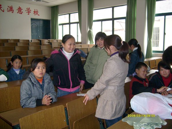 在聋哑学校李老师的陪伴下,大家参观了学生宿舍,并与该校学生进行了交流。在短暂的熟悉后,双方开展了象棋对弈、跳皮筋、打篮球等活动,其中我系有两位同学还为他们购买了水果。在依依惜别之际,我系同学还送上了精心制作的写满祝福的纸星星,以表达大家对孩子们的祝福。