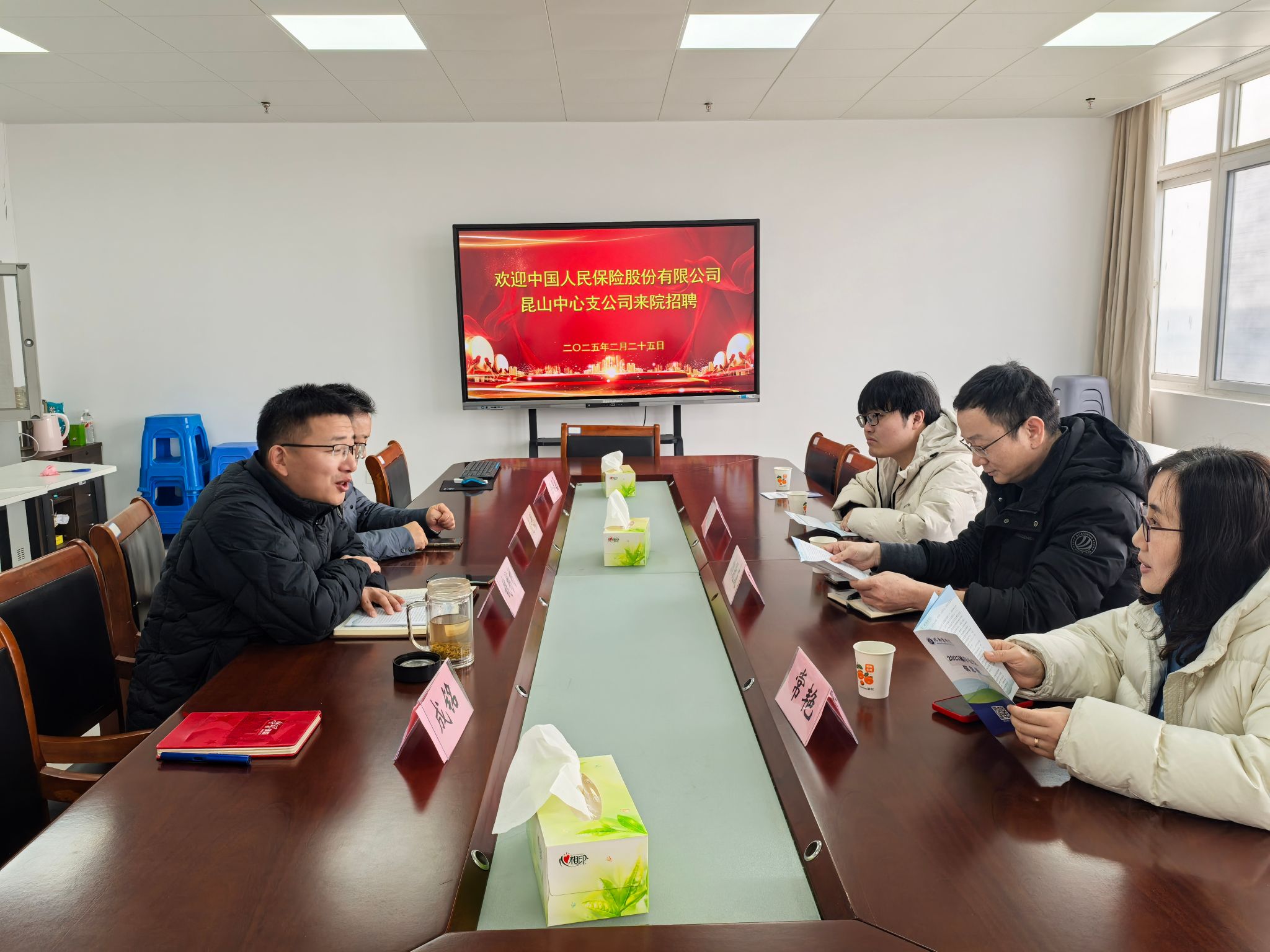 为扎实推进2025届毕业生就业工作,2月25日,新葡萄官网amg邀请中国人民保险股份有限公司昆山中心支公司来院开展专场招聘。