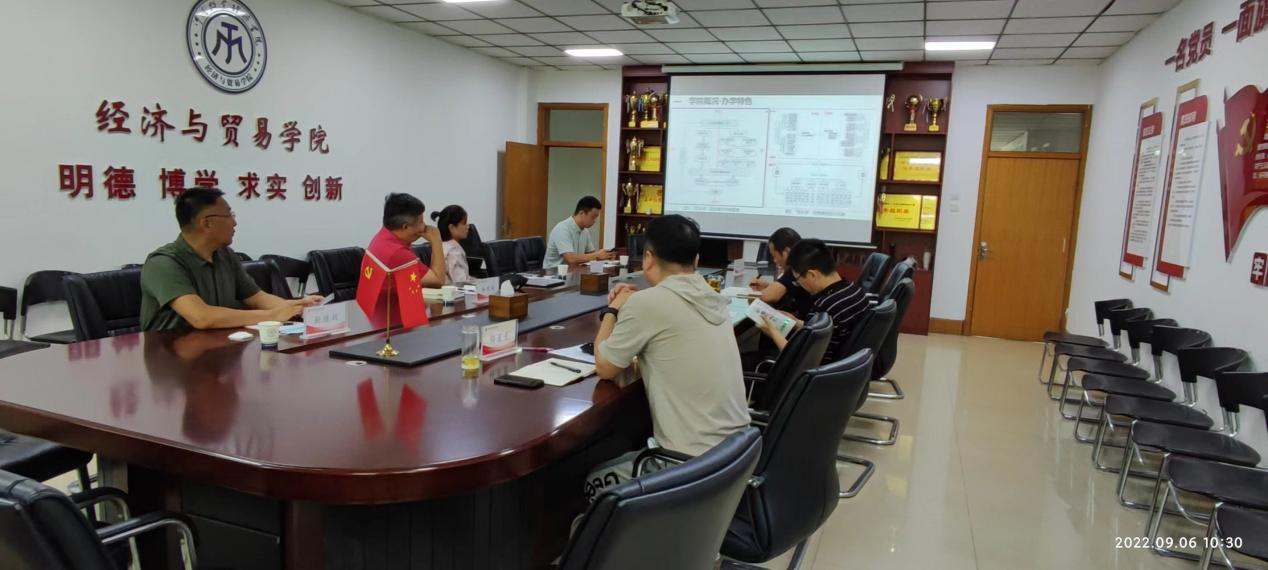 2022年9月6日上午,河南文投乡村发展有限公司总经理林荣斌、项目总监赵美净,北京锦润万泽科技有限公司总经理靳绪双、战略合作总监张延超来Beat365官网洽谈校企合作事宜,经济与贸易学院党委书记张松刚、院长李光、副院长梅星星参加了座谈交流,座谈会由张松刚主持。