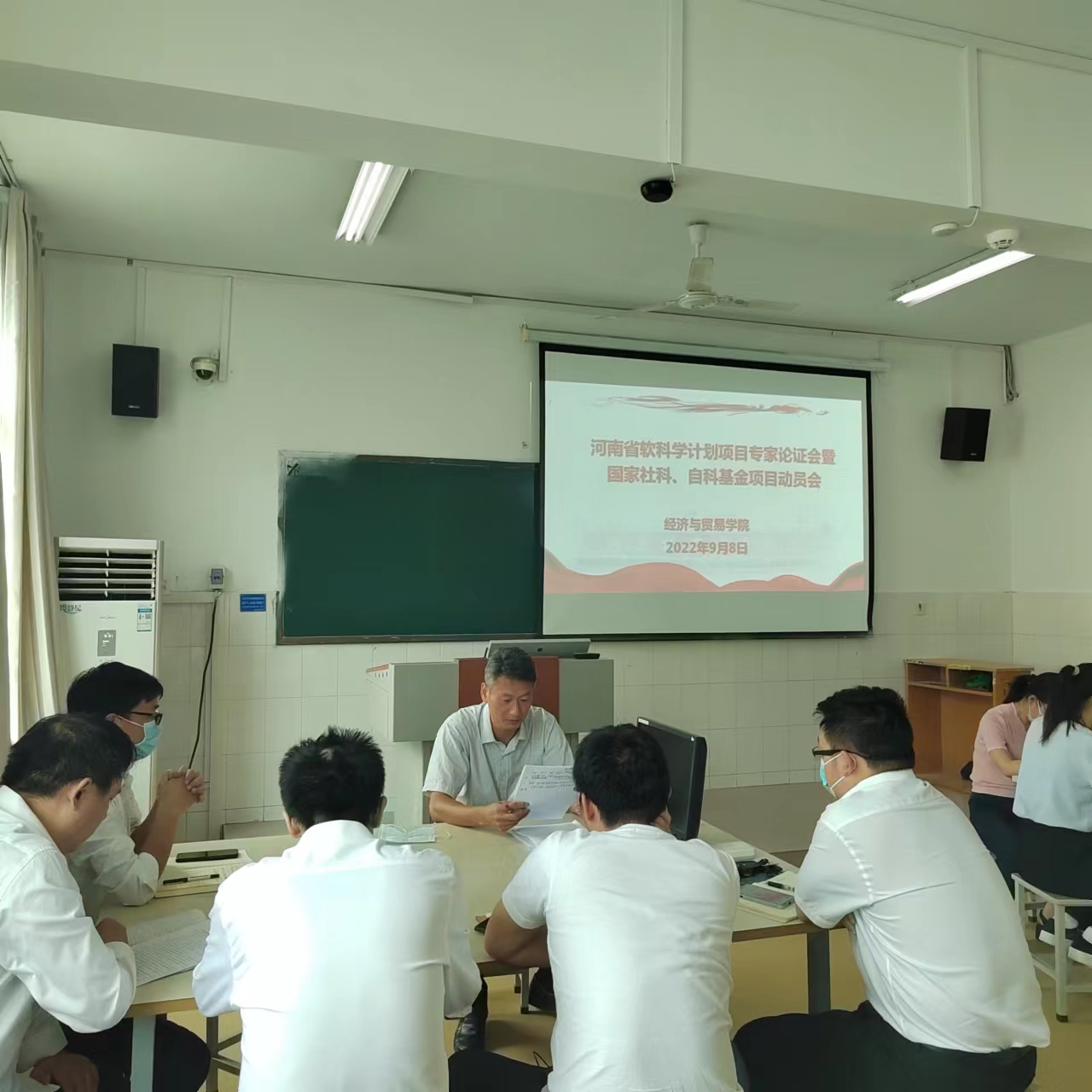 2022年9月8日下午,Beat365唯一官方网站在英才校区B409举行2023年度河南省软科学计划项目论证暨国家社科、自科基金项目申报动员会,中共河南省委党校经济学教授、研究生导师张祝平应邀参会,并进行现场论证与指导。Beat365唯一官方网站院长李光、副院长杜玲、梅星星、科研办公室主任唐伽、申报河南省软科学项目的老师和全体博士参加了本次会议。会议由李光院长主持。