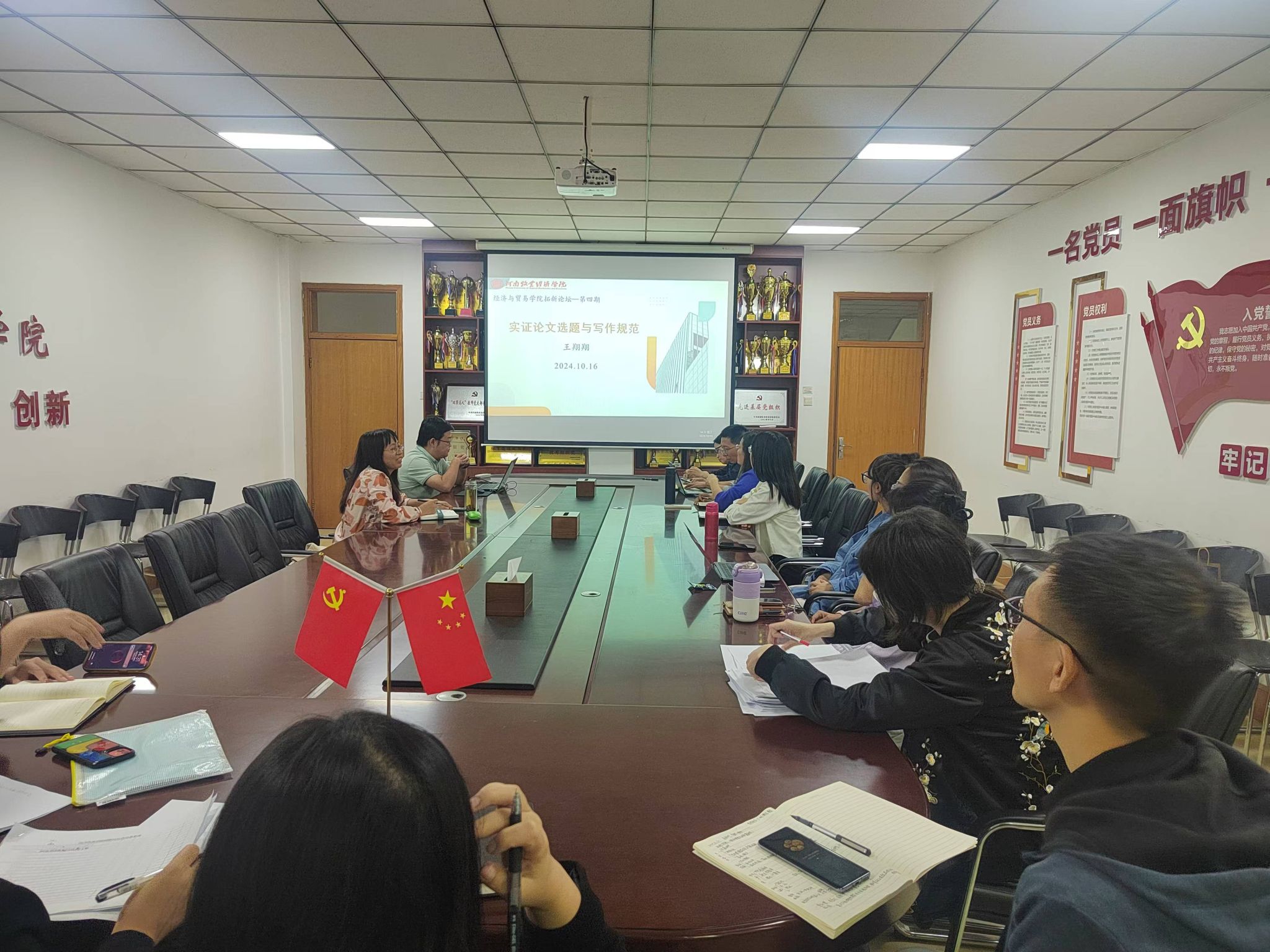 为提升Beat365官网学术研究的质量和规范性,2024年10月16日下午Beat365官网在英才校区教学办公楼327举办了“Beat365唯一官方网站第4期‘拓新论坛’学术活动——实证论文选题与写作规范专题讲座”。统计学教研室主任王翔翔博士就实证论文的选题与写作规范进行了深入的探讨和分享,Beat365官网青年博士和部分教师参加了本次会议,会议由Beat365官网副院长杜玲主持。