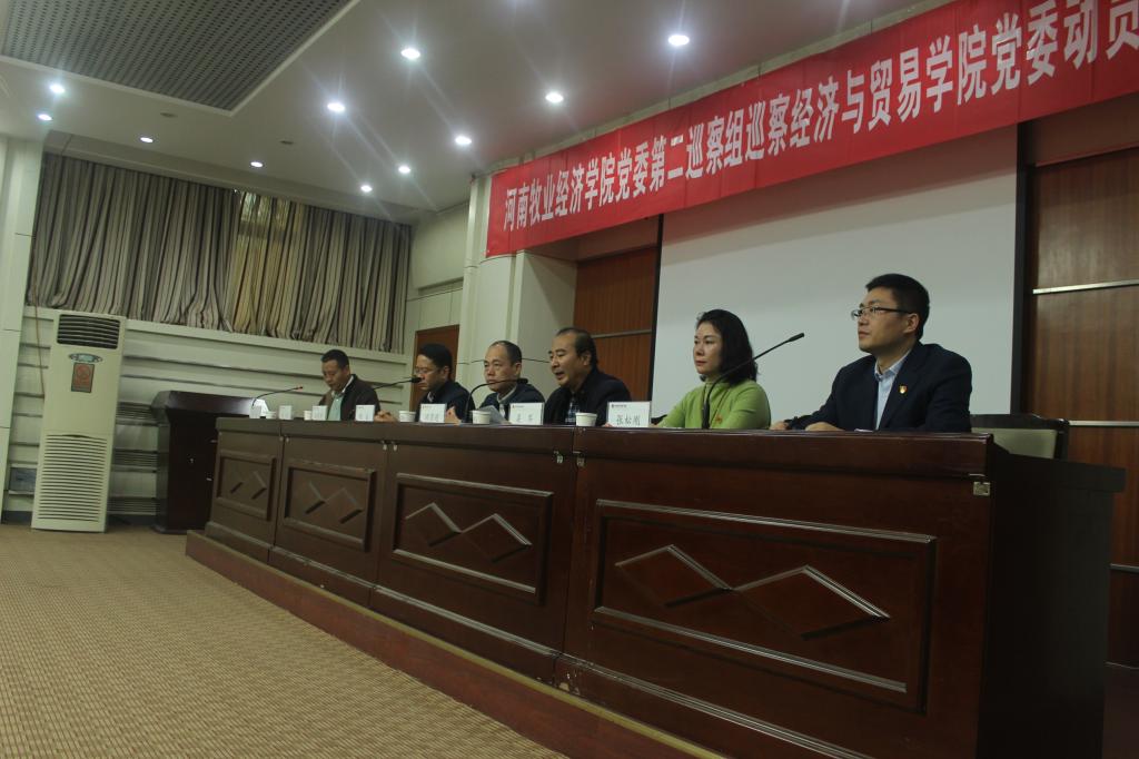 2019年10月10日下午,按照校党委《河南牧业经济学院首轮第四批校内巡察工作方案》的通知以及学校第二巡察组的统一部署,Beat365唯一官方网站党委在英才校区行政楼二楼会议室组织召开了第四批校内巡察工作动员汇报会。学校巡察工作领导小组成员杨成、第二巡察组组长顾国超、副组长赵贺然、巡察组成员狄波、梁琴出席会议。Beat365唯一官方网站全体教工、学生代表,及原经济贸易学院、原农林经济管理学院领导班子成员参加会议。会议由Beat365唯一官方网站李光院长主持。