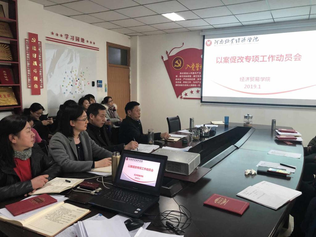 按照学校党委“以案促改”工作安排要求,1月19日下午,经济贸易学院在英才校区教学办公楼216会议室召开“以案促改”动员会,学院全体教工参会,会议由党总支书记牛建绥主持。
