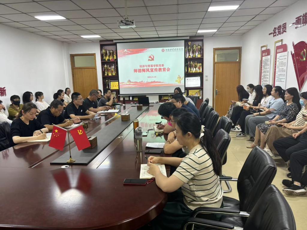 会上,张松刚书记全面传达了学校关于开展师德师风主题教育活动的总体部署及时间节点要求,重点领学了《河南牧业经济学院教师师德失范行为负面清单及处理办法》的精神内涵,围绕该文件出台的基本背景、负面清单内容及相关处理程序等做了强调说明,特别就《办法》中关于教职工师德失范行为逐一进行解析及阐释,强调全体教师要认真学习领会,在思想上高度重视,从自身做起,从细节着手,切实把师德师风规范全方位落实到生活和工作的方方面面。他指出,教师从事着教书育人的伟大事业,承担着立德树人的神圣使命,正人须先正己,师德师风是每一位教师的生命线,更是不可触碰的底线。老师们要大力弘扬新时代教师道德风尚,始终保持高度的责任感和使命感,真正把立德树人的任务贯彻好,落实好,通过提升自身的道德素养和职业操守不断践行教育家精神,引导学生树立正确的人生观和价值观,把师德师风的要求转化为提升优质教育成果的动力,为培养出更多优秀人才贡献自己的力量。