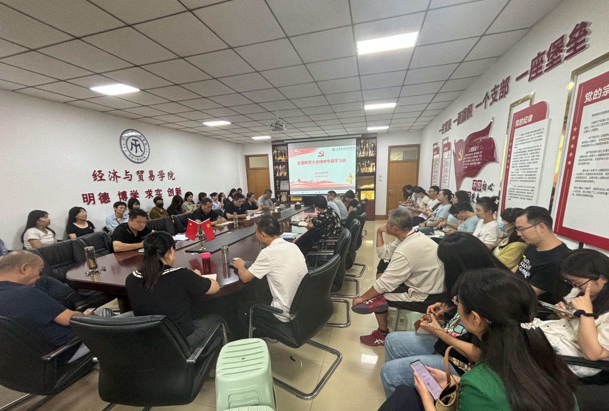 9月12日下午,Beat365官网在英才校区教学楼327会议室召开全国教育大会精神专题学习会,集体学习了习近平总书记在大会上的讲话精神,全体教职工参会。会议由院党委书记张松刚主持。