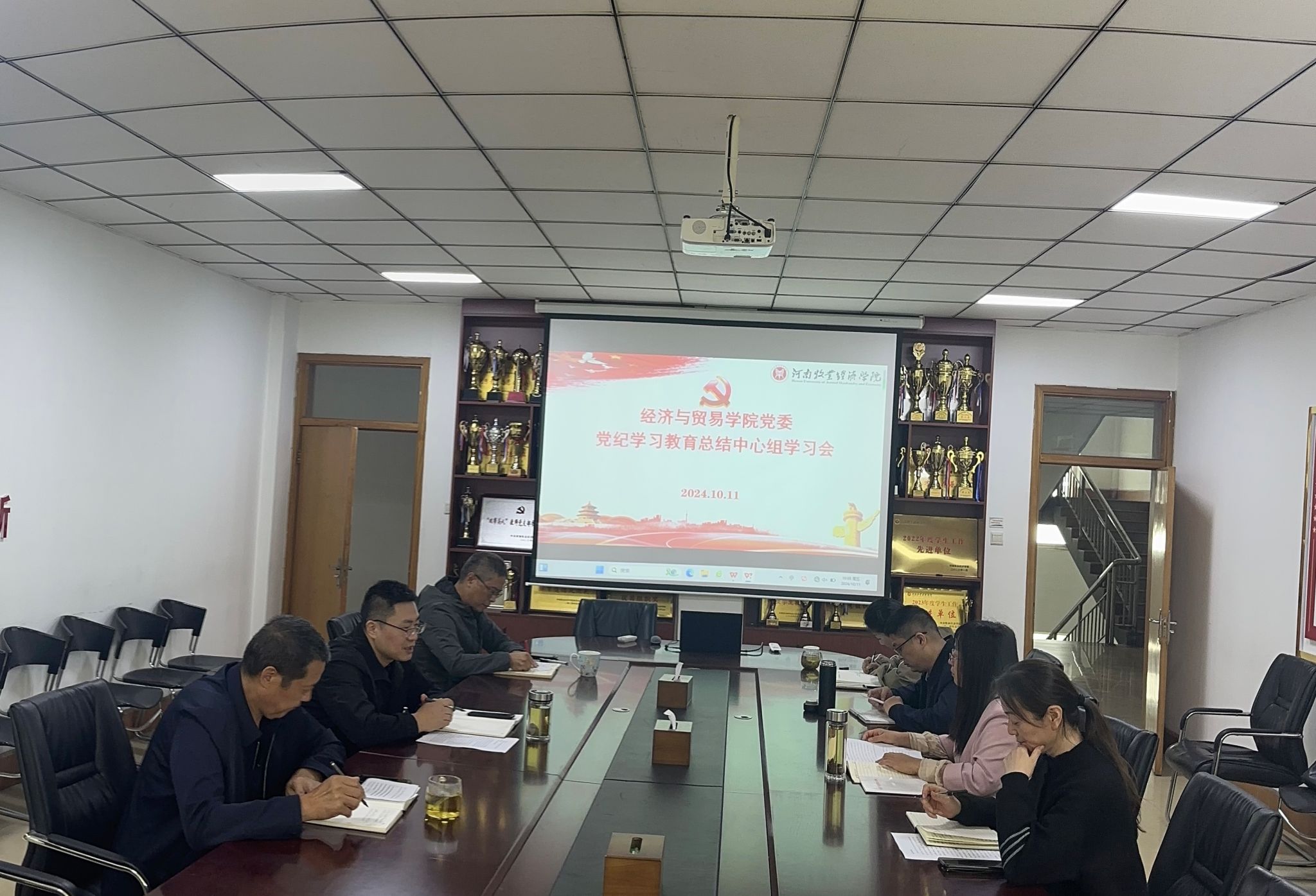 10月11日,Beat365官网党委以二级理论学习中心组集体学习的形式在英才校区教学楼327会议室召开党纪学习教育总结会,深入学习贯彻习近平总书记关于党纪学习教育的重要指示精神,传达领会学校党纪学习教育总结会有关要求,梳理总结学院党纪学习教育做法成效,围绕构建党纪学习教育长效机制进行理论研讨。院党委班子成员参会,会议由院党委书记张松刚主持。