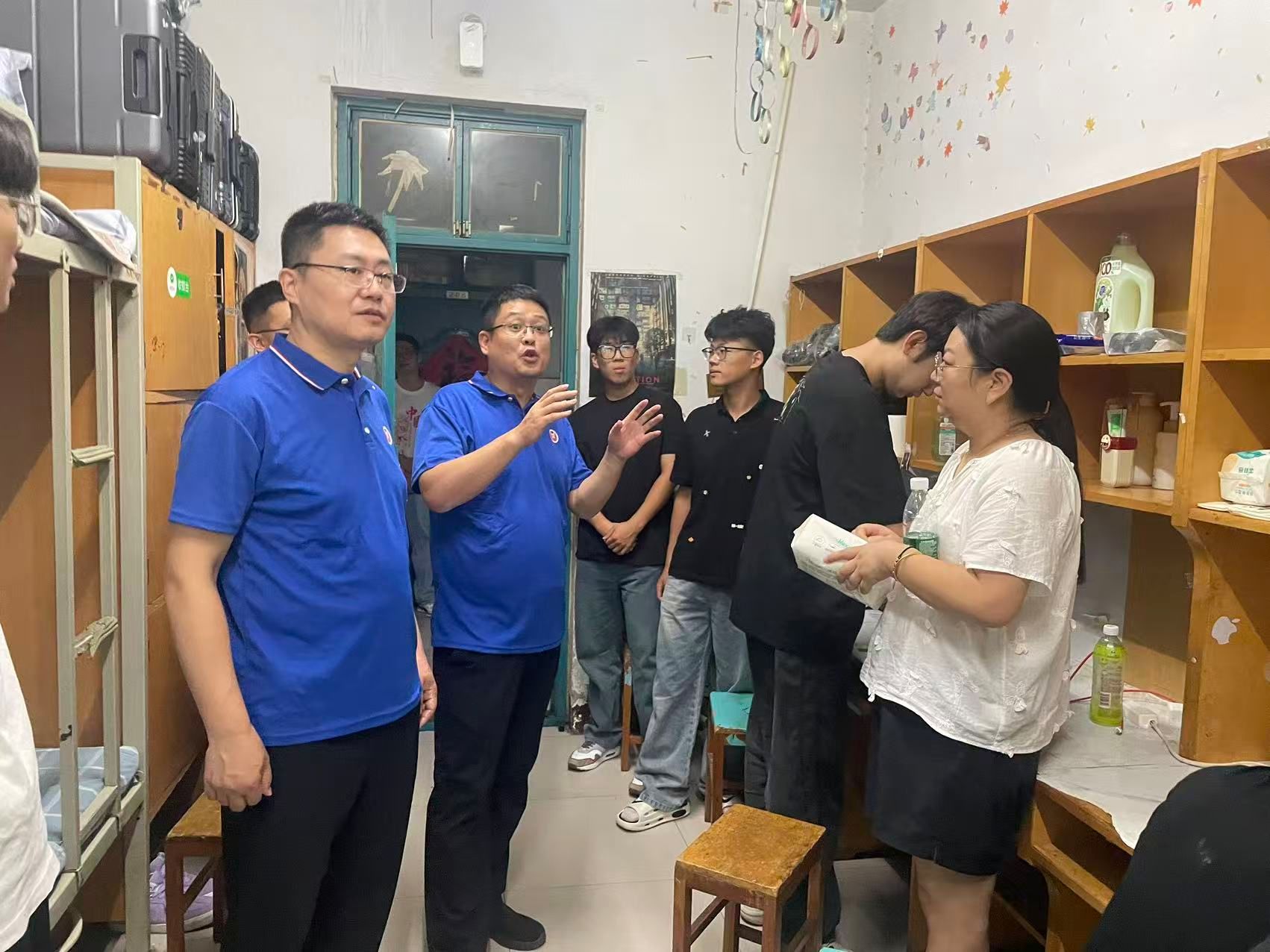为全面掌握 2025 级新生到校动态,助力新生快速融入校园生活,9 月 13 日下午,Beat365官网党委书记张松刚、院党委副书记贾艳艳、杜院长杜玲带队,团委书记(学工办主任)刘佳楠、团委副书记(学工办副主任)李政及全体辅导员、班主任,分赴男、女新生宿舍区开展走访慰问活动,为初入校园的新生们送去贴心关怀。