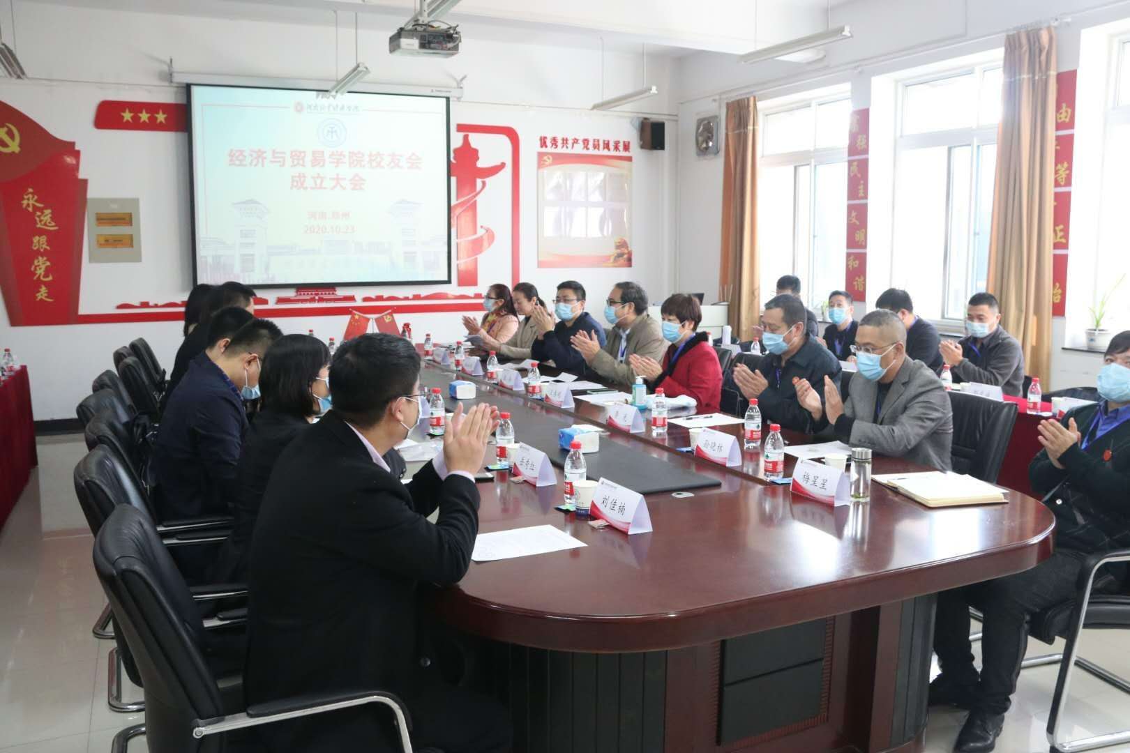 为增进校友与母校的联系,促进相互交流、团结互助、共同发展,按照学校校友工作总体安排,2020年10月23日上午,Beat365唯一官方网站在我校龙子湖校区二号教学楼C523会议室隆重召开“河南牧业经济学院Beat365唯一官方网站校友会”成立大会。副校长张伟、学校校友工作办公室主任王春明应邀出席大会、指导工作。Beat365唯一官方网站党委书记张松刚、院长李光、院党委副书记贾艳艳、副院长孙晓林、副院长杜玲、副院长梅星星、院党政办主任周晓娜、院团委书记(学工办)主任刘佳楠、农林经济管理教研室主任岳秀红、国际经济与贸易教研室主任尚静以及30位返校校友和在校学生代表参加本次会议。
