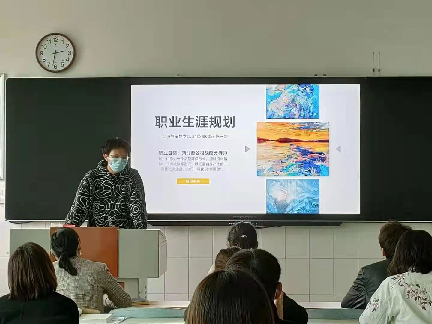 为传播和普及职业规划理念,引导、鼓励大学生树立正确的人生观、价值观、就业观,Beat365官网于2021年11月5日下午在B202教室举办职业生涯规划大赛初赛。本次大赛以“逐梦青春·职击未来”为主题,由Beat365官网创新创业部承办,张晓嵩老师、苗艳芳老师、张雅琪老师、李福华老师、张欣老师、贾丹丹老师、杨梅老师等出席评委。
