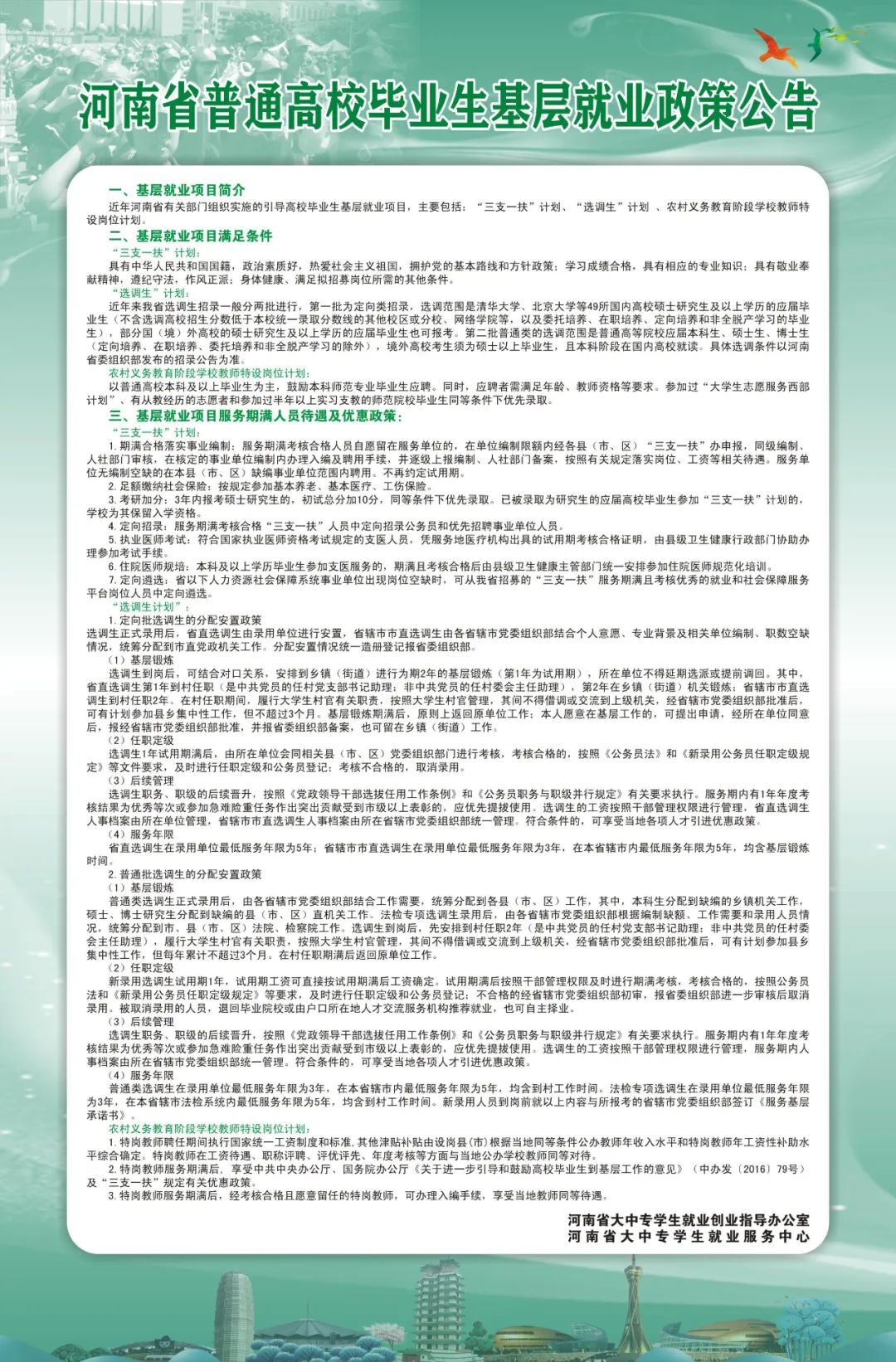河南省高校毕业生就业创业政策