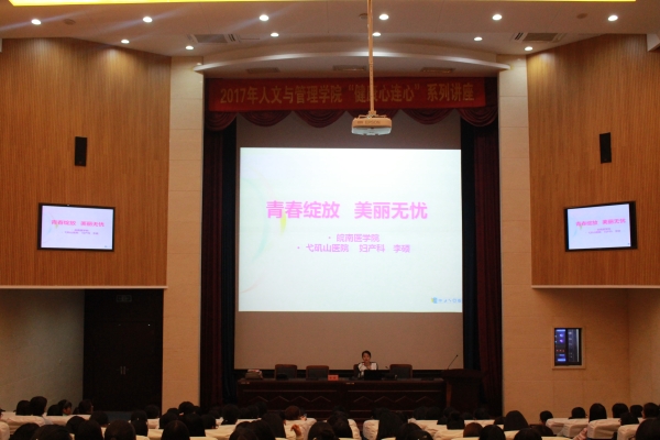 为使我院学生更加深入的了解女性生理健康知识,关注自身身心健康,提高女性自我保护意识,新葡萄官网amg于3月27日晚在逸夫楼一楼报告厅举办了以“青春绽放,美丽无忧”为主题的专题讲座,本次讲座邀请了弋矶山医院妇产科副主任医师李硕老师主讲,新葡萄官网amg党总支书记窦弘主持,学院团委副书记张欣慧参加本次讲座,2016级全体女生到场聆听。